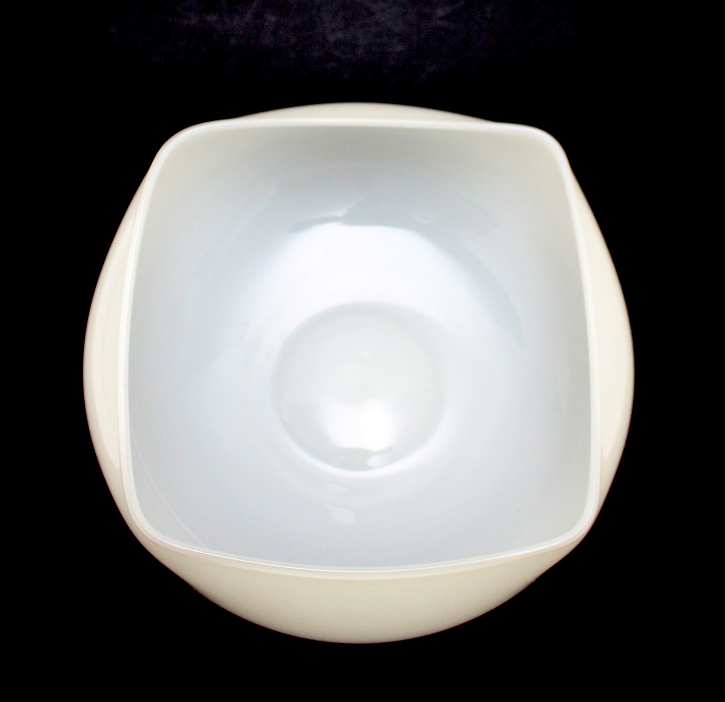 Holmegaard, Quadro Art glass. Cremehvid skål med firkantet top og kugleformet bund. Designet af Peter Svarrer i 2003. Quadro er en brugskunst serie i forskellige former og farver, der starter i 1998 og udgår af produktion i 2004. Skålen var dyr at fremstille pga. den firkantede top kombineret med den runde bund. Højde 10 cm. Diameter 22 cm. II sortering. Fin stand. Pris: 425 kr. stk. Lager: 1