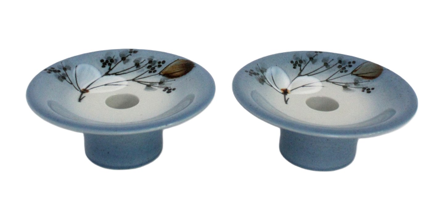 Royal Copenhagen Celeste lyseblå porcelæn med blomstermotiv. Designet af Ellen Malmer. Lysestage. Nr. 967/3901. Diameter 12,5 cm. Højde 5 cm. I. sortering. Pris: 250 kr. stk. Lager: 2