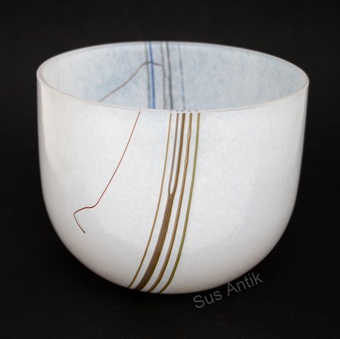 Ipsen Enke vase med blå glasur med rillet hals, design Volmer Bahner 1939. højde 14,5 cm, diameter 10,5 cm.Signeret IPE X 45