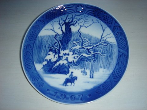 Royal Copenhagen, Kongeegen ved Jægerspris i sne julen 1967. Diameter 18 cm. I. sortering. Pris: 150 kr.