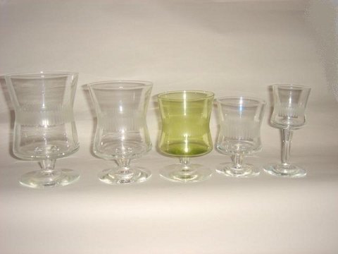 Hvidvin klar, højde 9 cm. Pris: 75 kr. stk. Lager: 12 (2 originalæsker med 6 stk. i hver og mærkater på glassene. Pris: pr. æske 400 kr.)