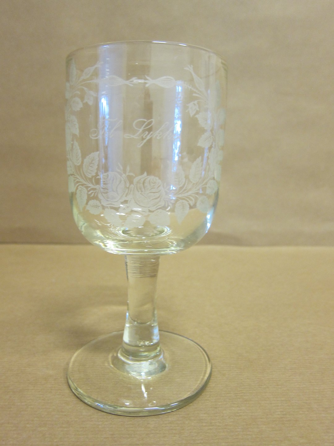 Memory-/recollection-glass, about 1910, with etched dekoration