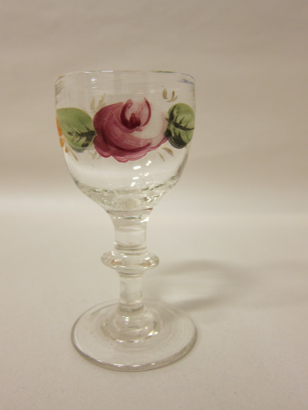 Snapseglas, antikt, dansk, emaljedekoreret Ca. 1880 H: 9cm Varenr.: 1007
