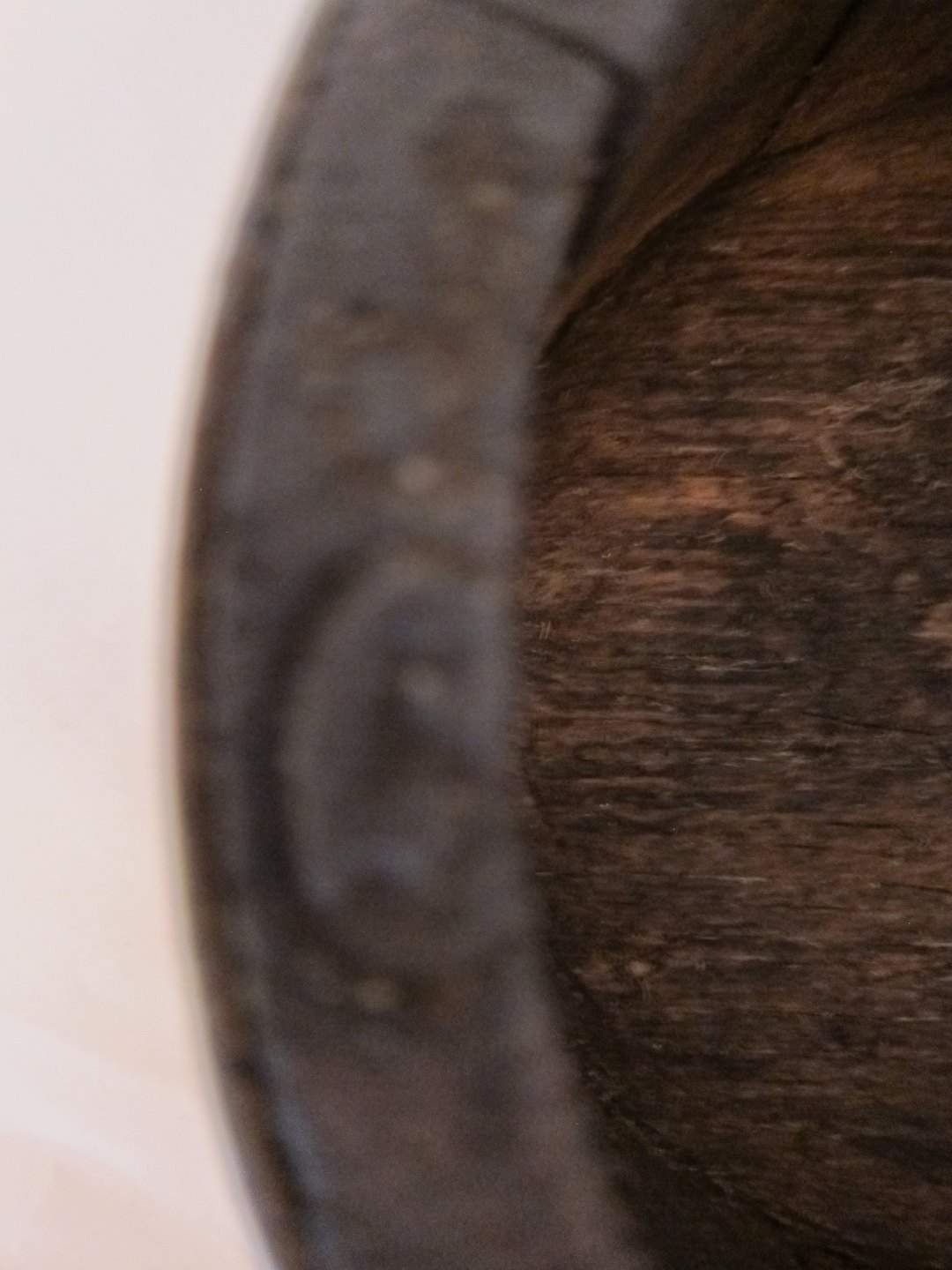 Bushel (1/16) measurement made of wood, from 1906 With bands made of iron, With stamp D top: 15,5cm, D bottom: 17,5cm Articleno.: 411171