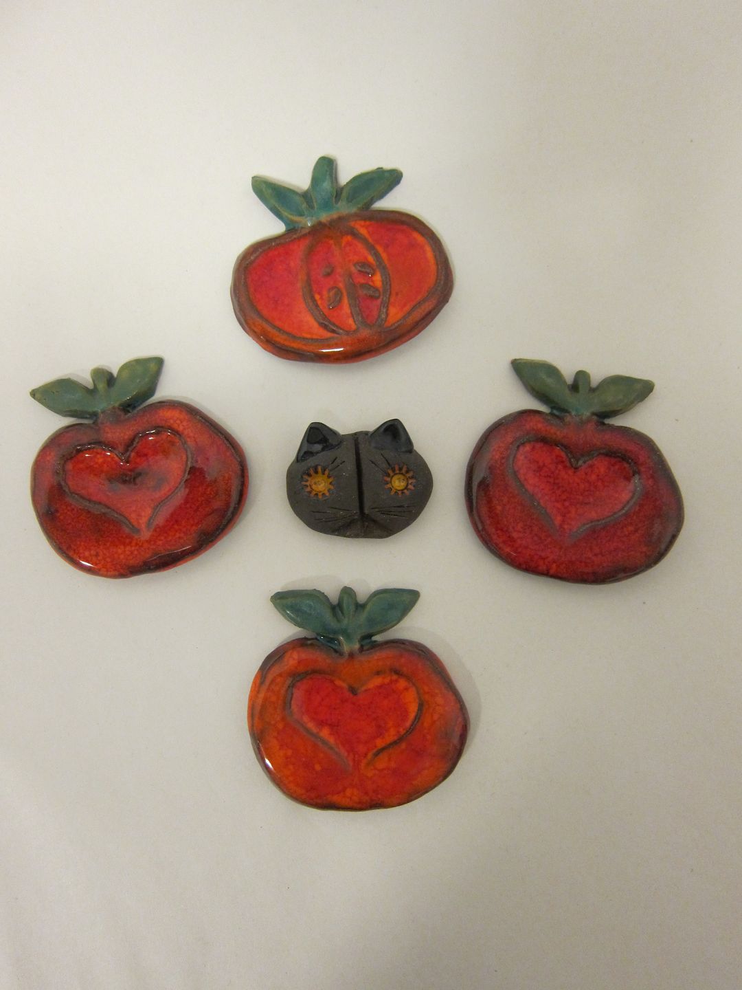 4 stk. pynteæbler, 7cm x 7cm (ca.), Dkr. pr. stk.: 95,-