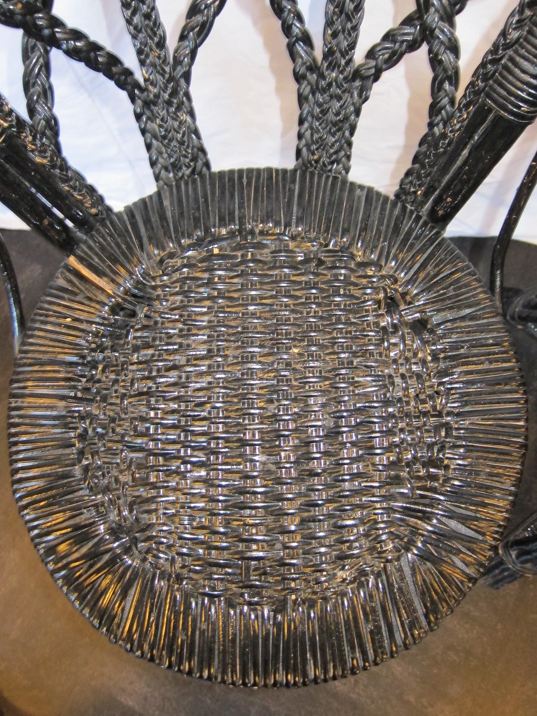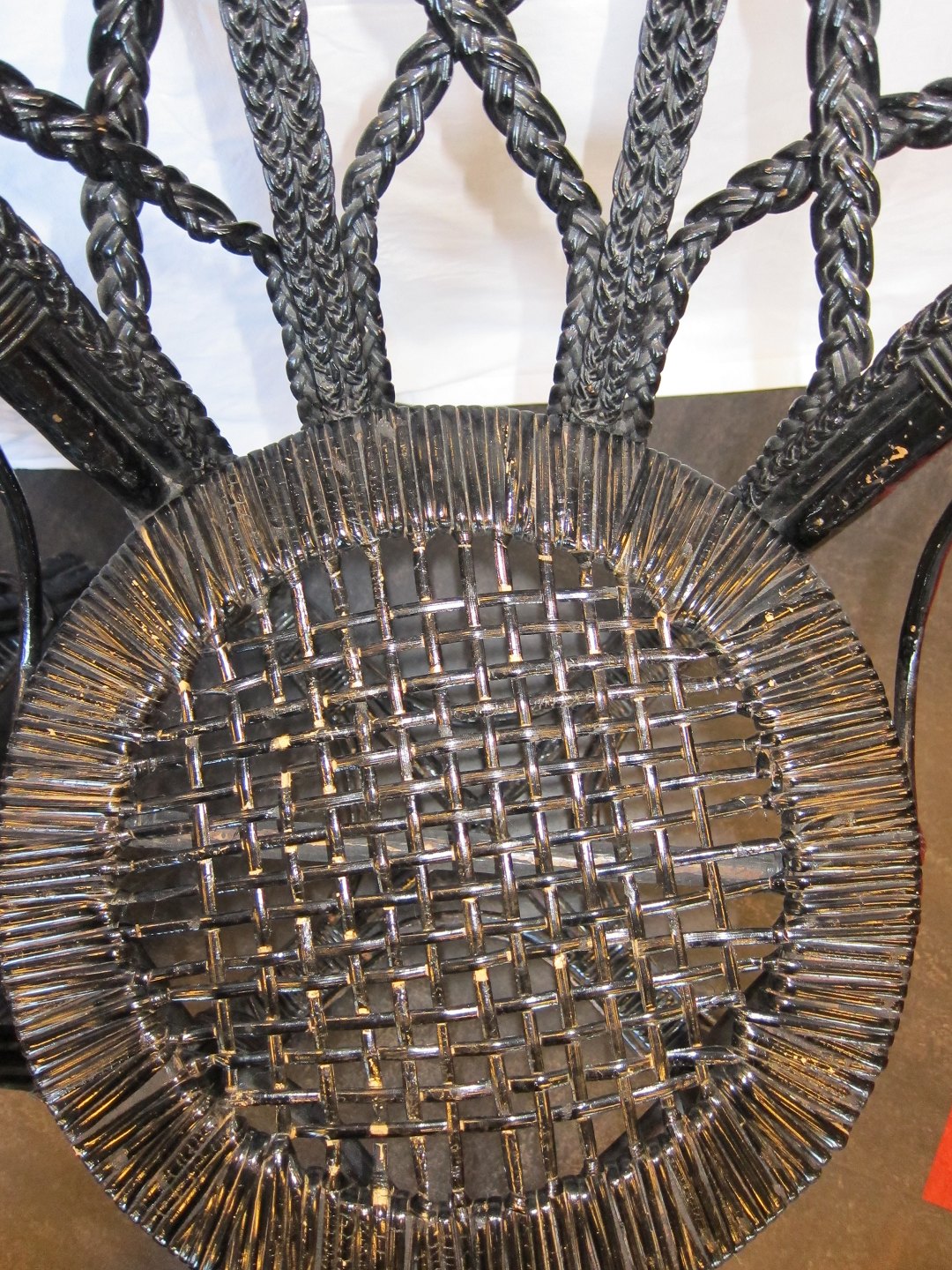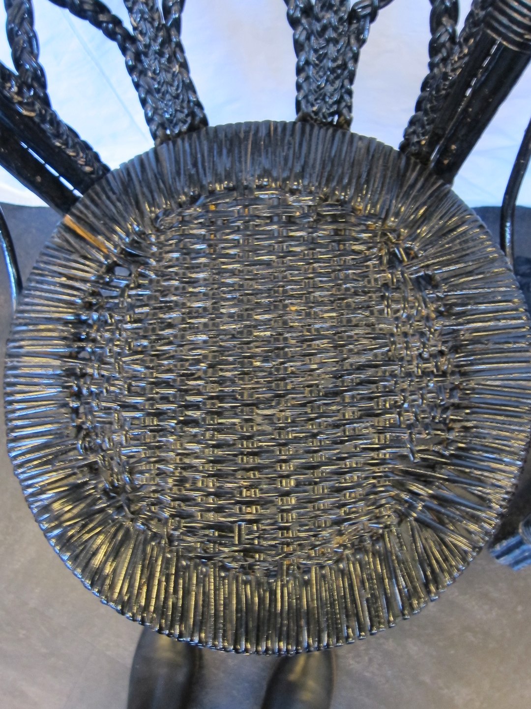 Flechtstühle 2 schöne, schwartze Flechtstühle Um 1880 Bemerken Sie bitte die schöne Flecht-Sitz (nicht gleich) Flechtstuhl links: Dkr. 425,- Flechtstuhl rechts: Dkr. 550,- Varenr.: 31521