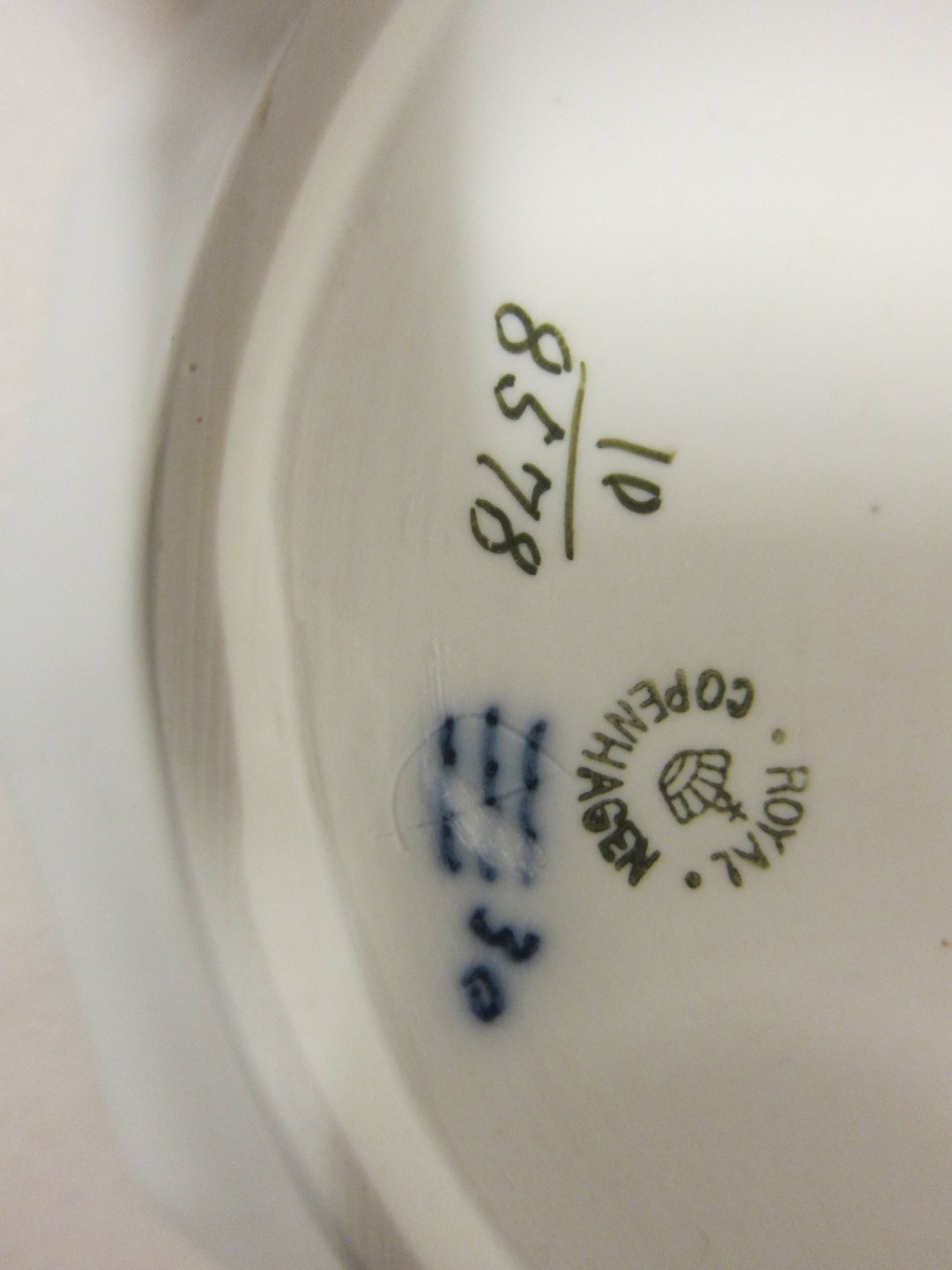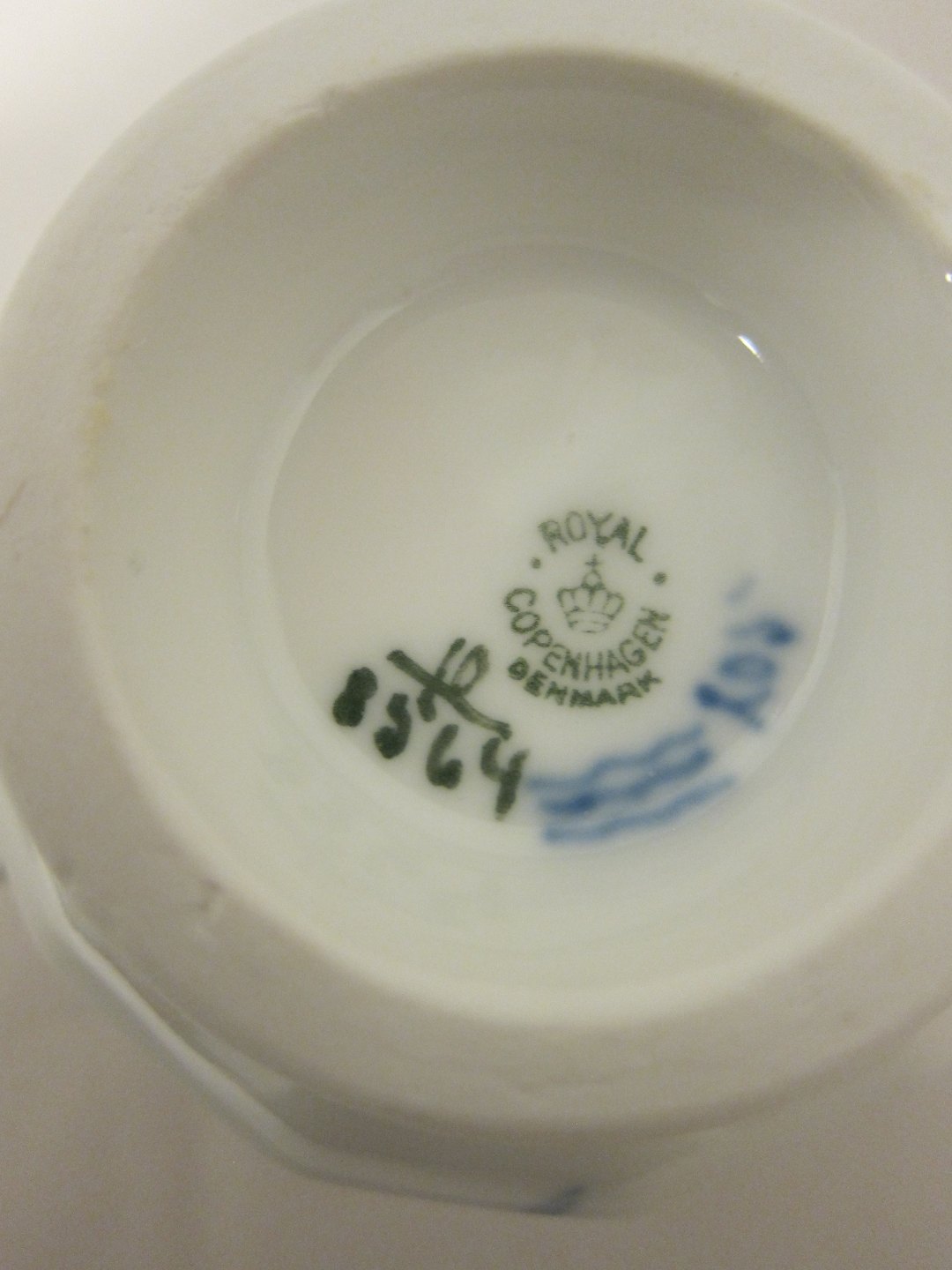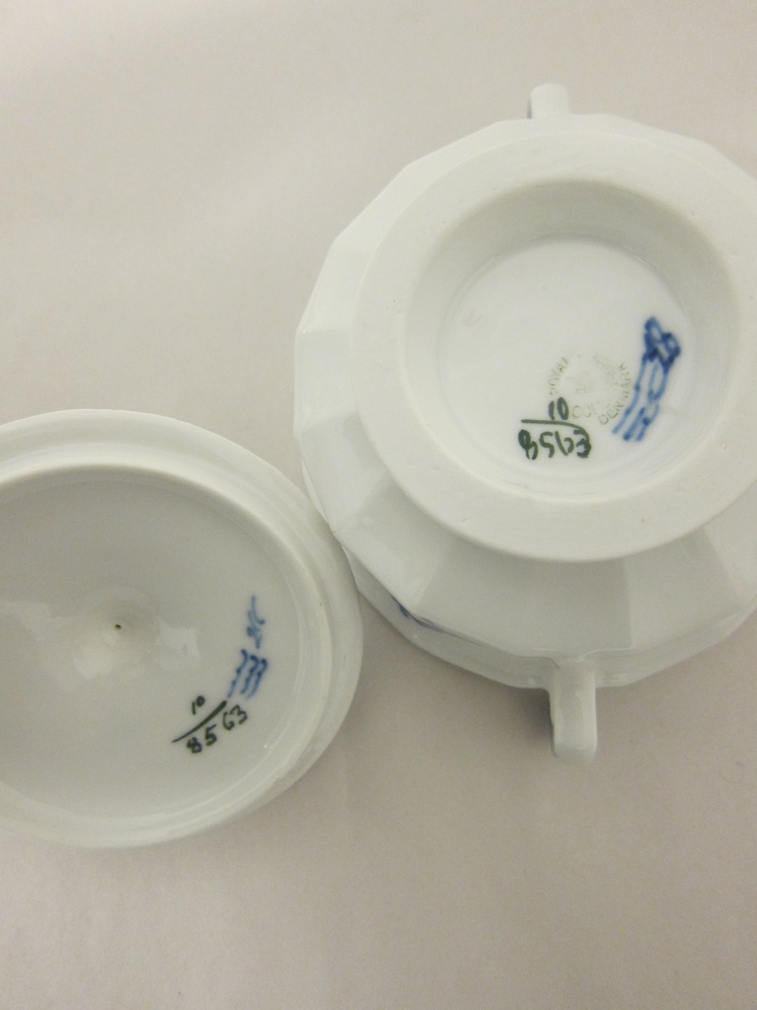Kongelig/RC-nr. 8563 (sukkerskål og låg - 2. sortering), 8564 (flødekande - 1. sortering) og 8578 (bakken - 2. sortering)