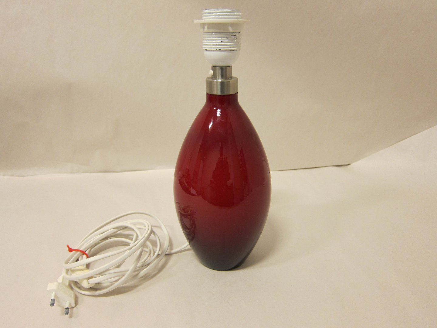 Table lamp Cocoon lamp in red opalglass from Holmegård, Denmark Design: Peter Svarrer H: 31cm incl. the holder Articleno.: 311112