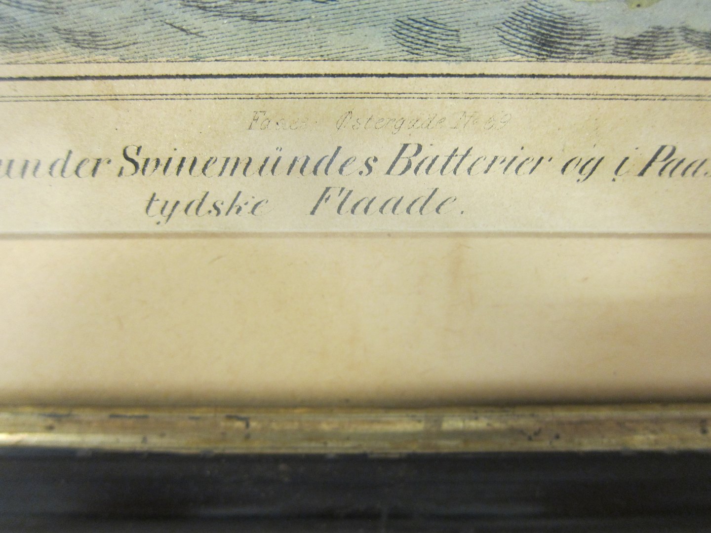 "Hekla tager 5 tydske Fartøier under Svinemündes Batterier og i Paasyn af die unüberwindliche tydske Flaade" "Fa.... Østergade No. 69"