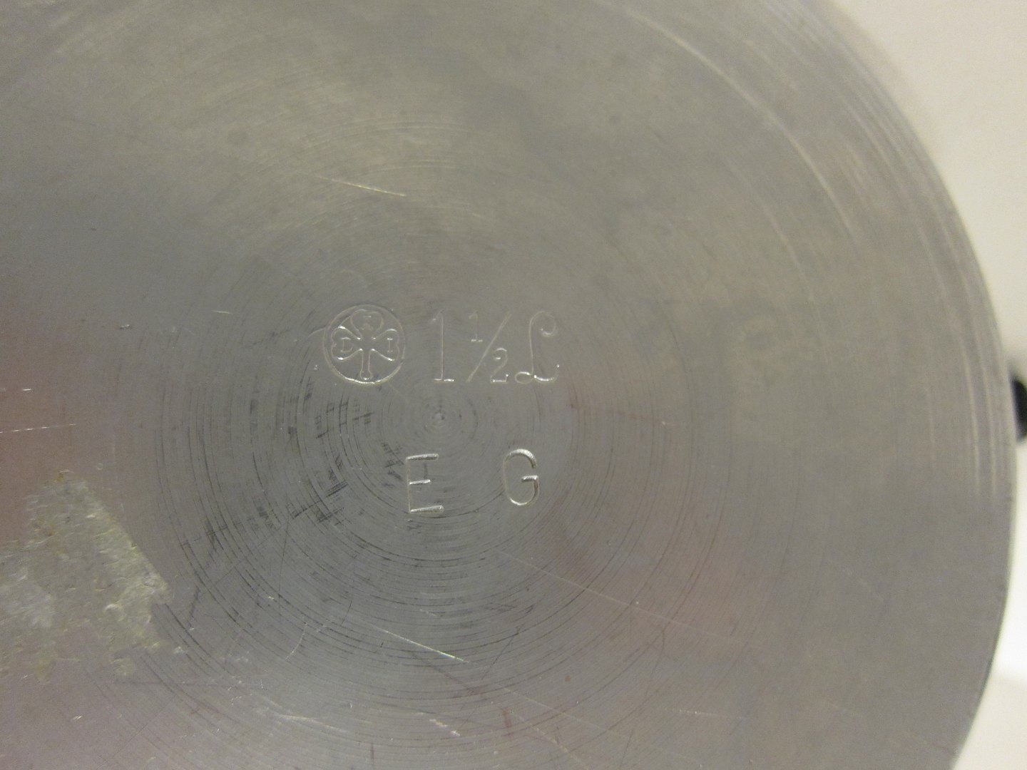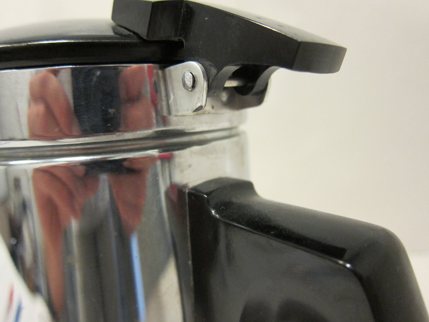 Kaffeekanne aus blankem Aluminium mit schwartzem Bakelit Haltegriff und Deckel