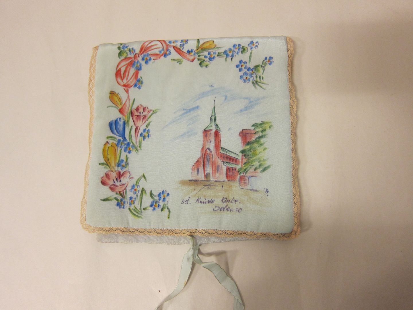 Omslag til lommetørklæder med motiv af Sct. Knuds Kirke, Odense, Danmark