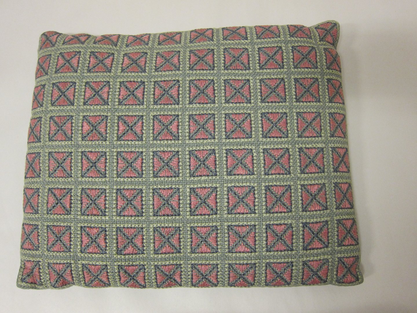 Pyntepude, håndbroderet med speciel teknik Broderet med korssting, tællesyning, og bagsting Mål: 28,5cm x 34cm Usædvanlig flot stand Varennr.: 511103