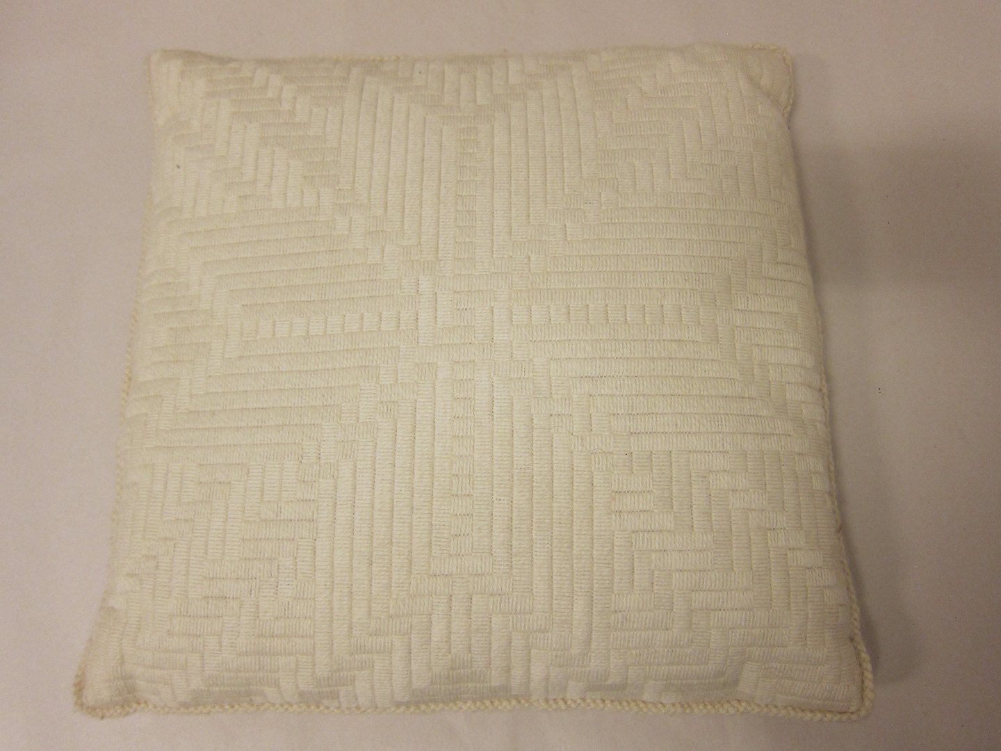 Pyntepude, håndbroderet med speciel teknik og en meget smuk kant En helt særlig pude Mål: 32,5cm x 35cm Usædvanlig flot stand Varennr.: 511103