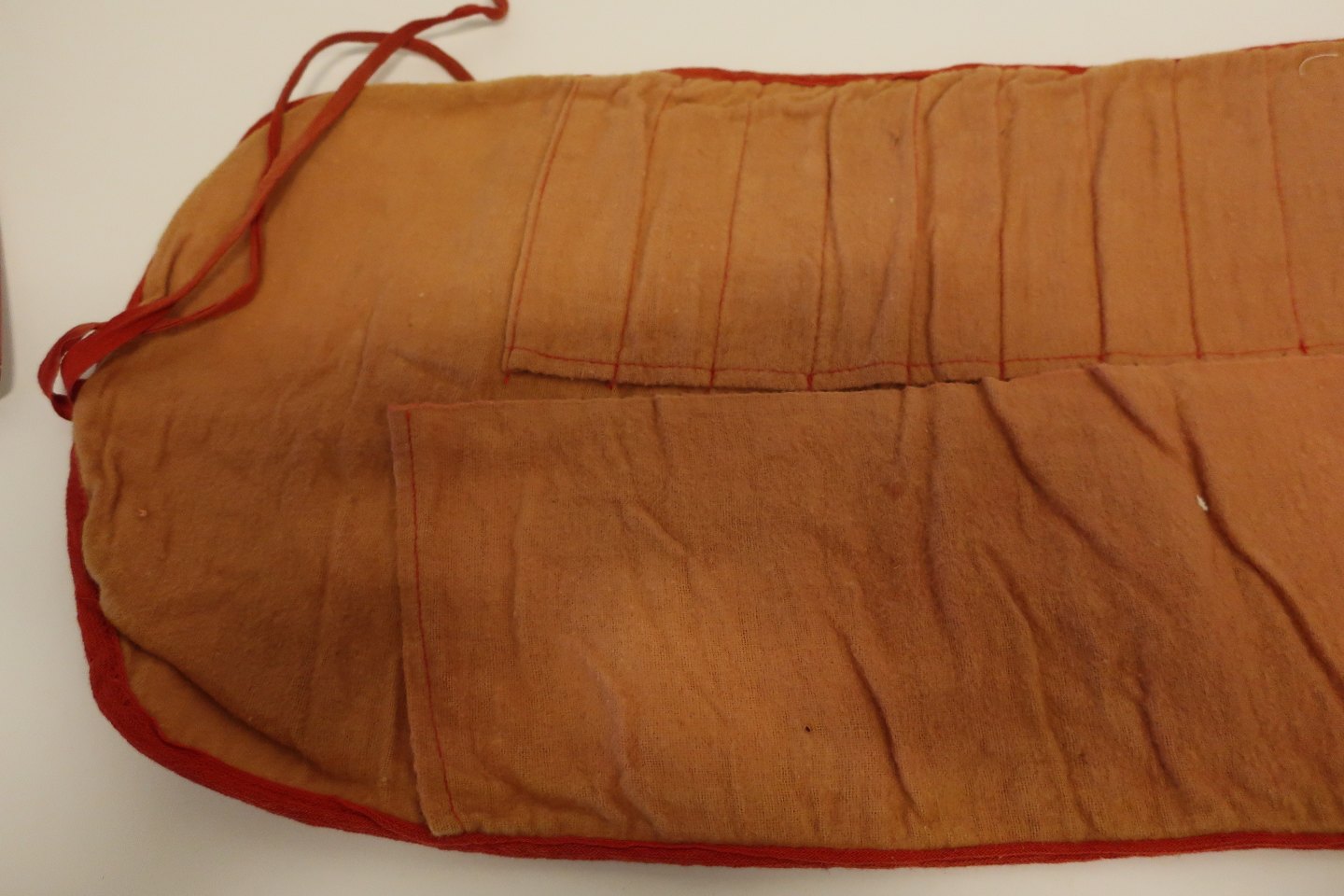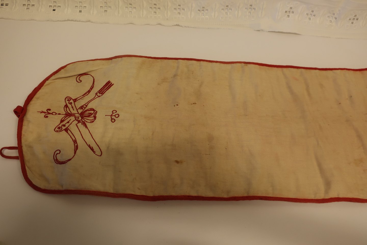 Gammel håndbroderet bestikpose til opbevaring af bestik