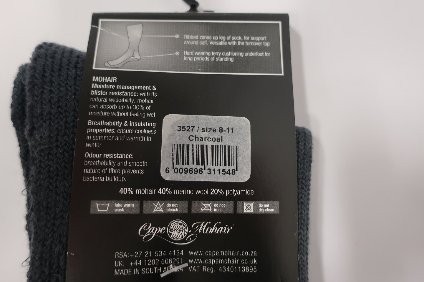 Reducerer risikoen for vabler, da mohair kan absorbere op til 30% fugt, før mohair føles vådt