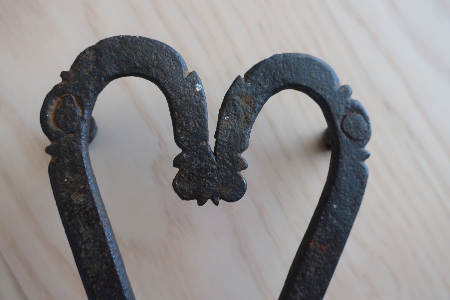 This beautiful piece of hand forged iron is in a form of a heart, and it is presumably made as a gift for his fiancé