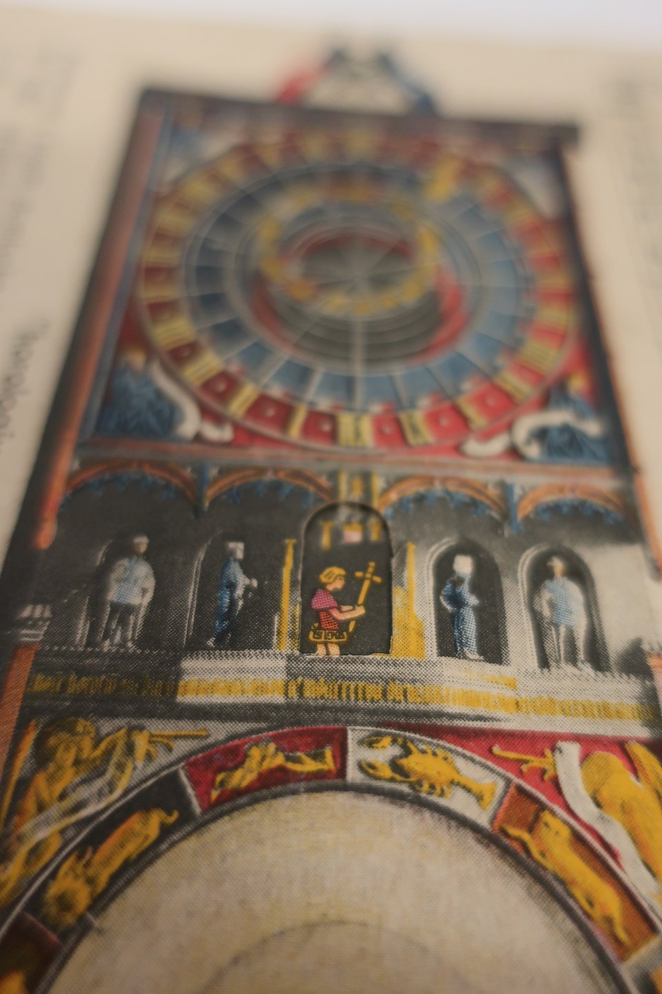 Illustrerer/gengiver det astronomiske ur "Horologium Mirabile Lundense" i Lund Domkirke i Sverige