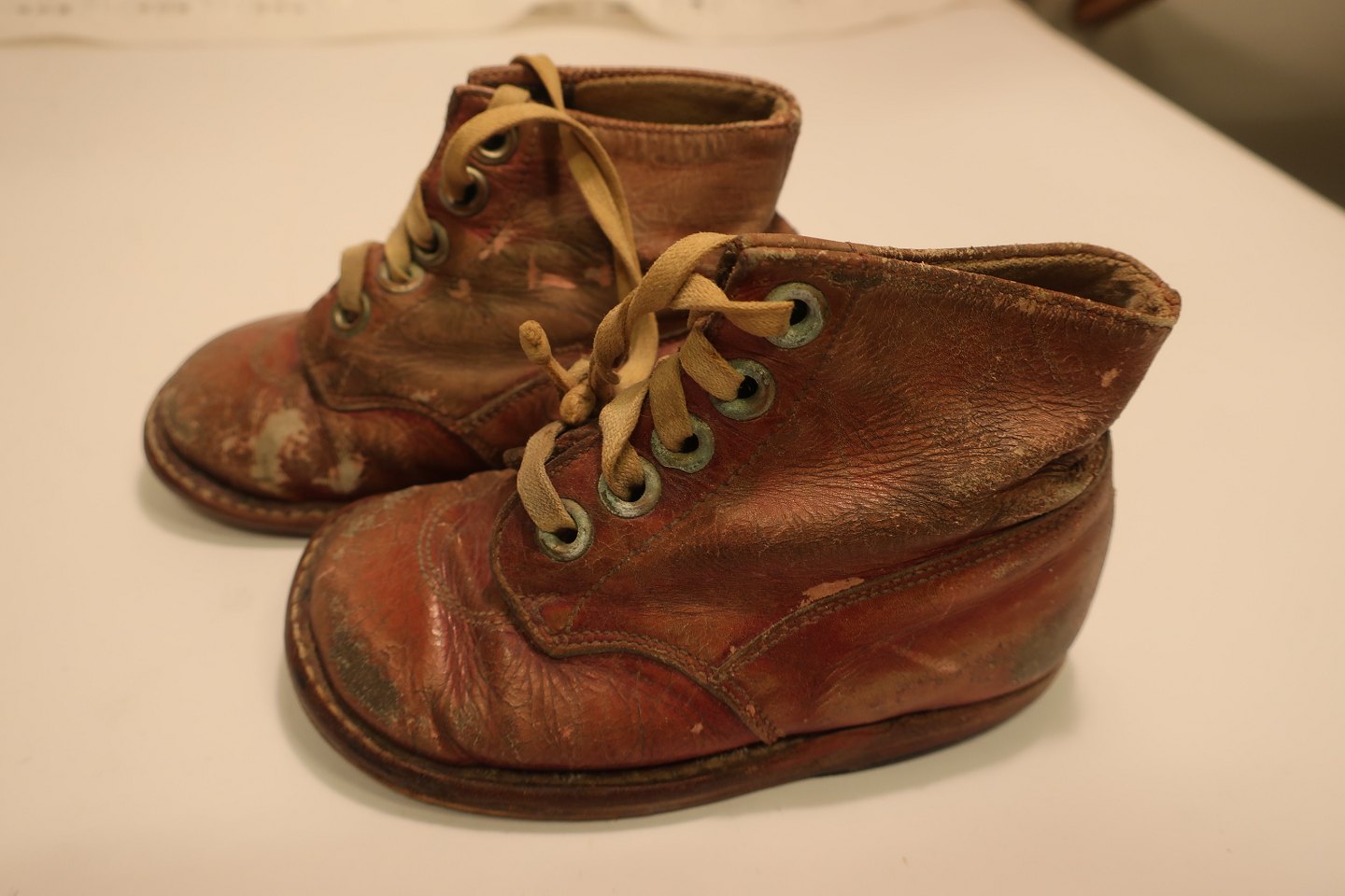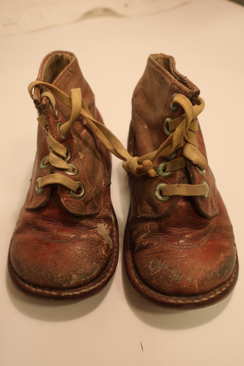 Shoes for the children Old, made of leather, size 20 With a soling, like it was made at that time from which the shoes are Condition due to age Articleno.: 4- 41215