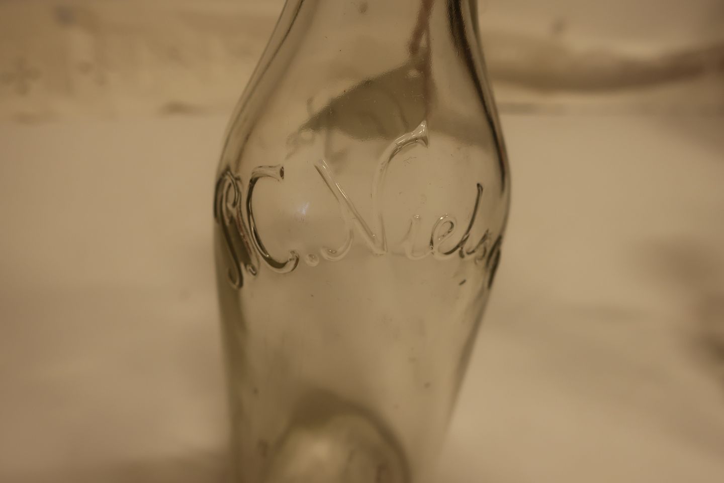 Patentflaske fra P.C. Nielsen i Vejle Navnet er præget i flaskens glas Uden indhold