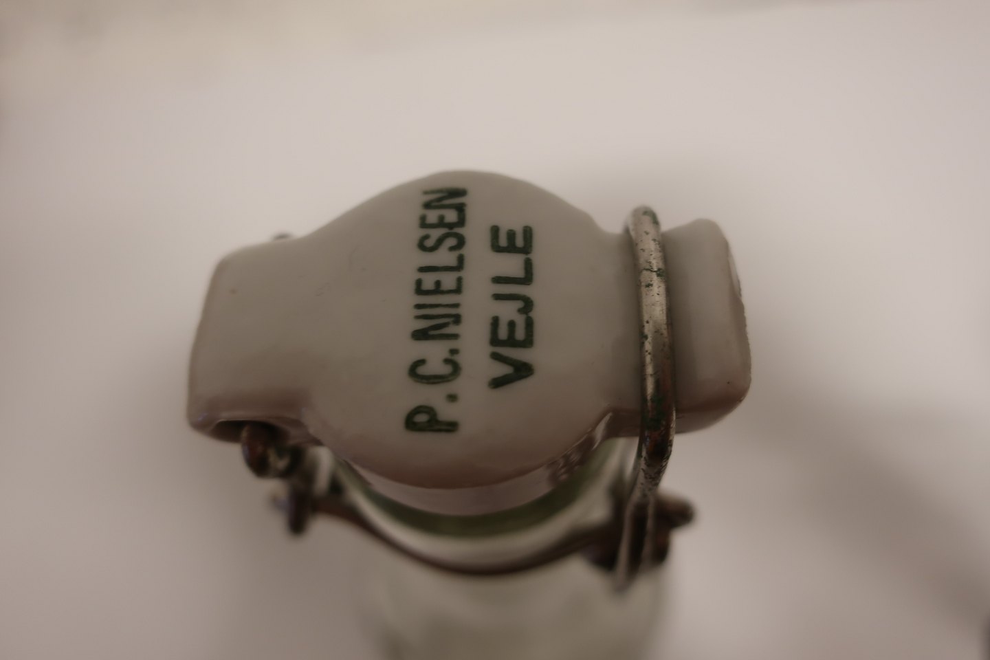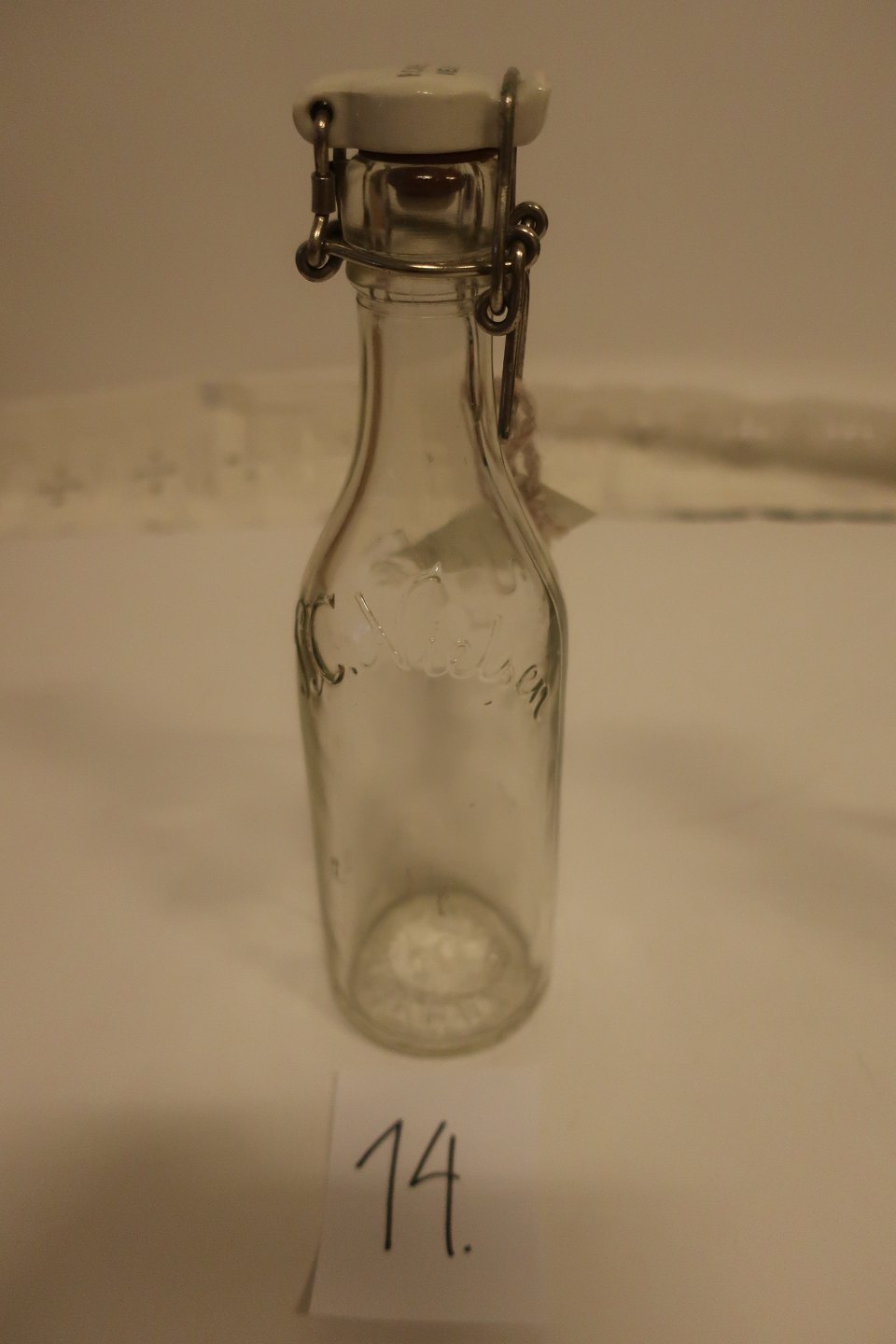 Patentflaske fra P.C. Nielsen i Vejle Navnet er pręget i flaskens glas Uden indhold