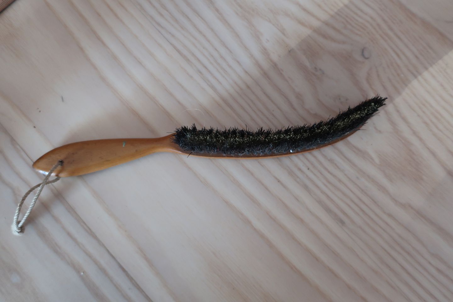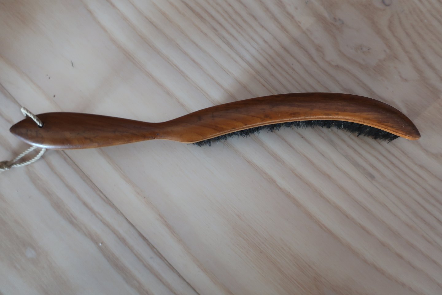 Gammel hattebørste Det er let at børste hattens skygge, for børsten følger faconen L: 25cm I flot stand Varenr.: 4-1499