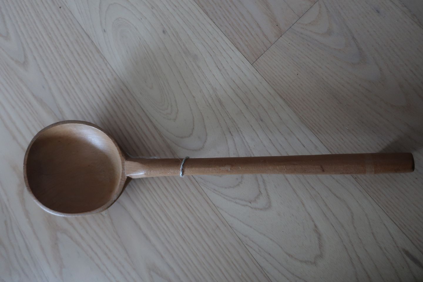 Stor gammel træ grødske/grydeske Flot skaft Perfekt til risengrøden God stand og smuk patina Varenr.: 4-311121