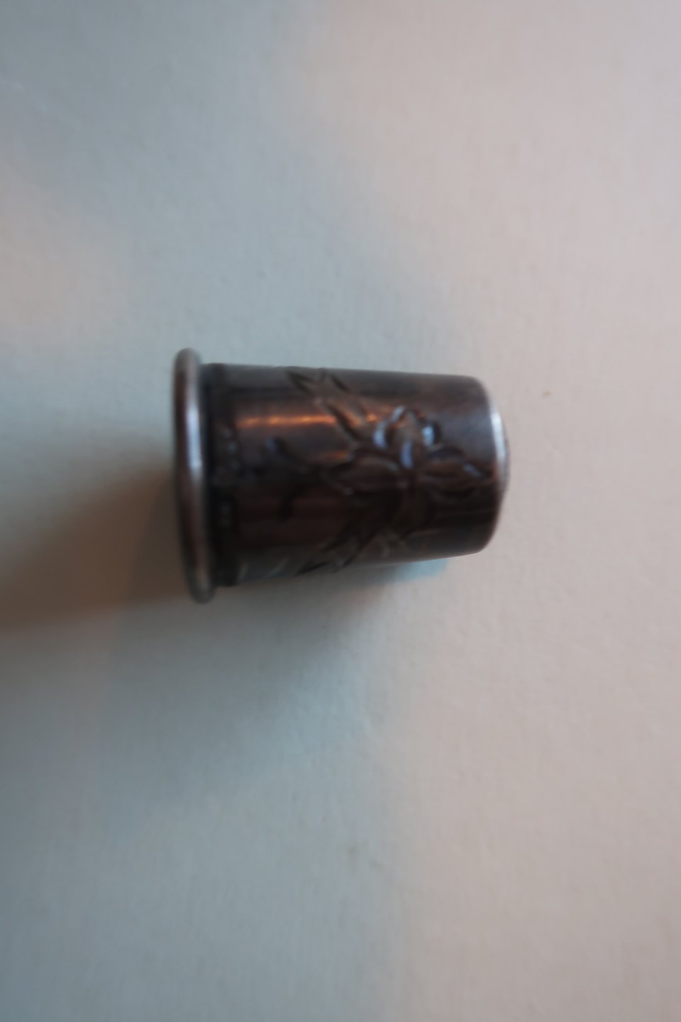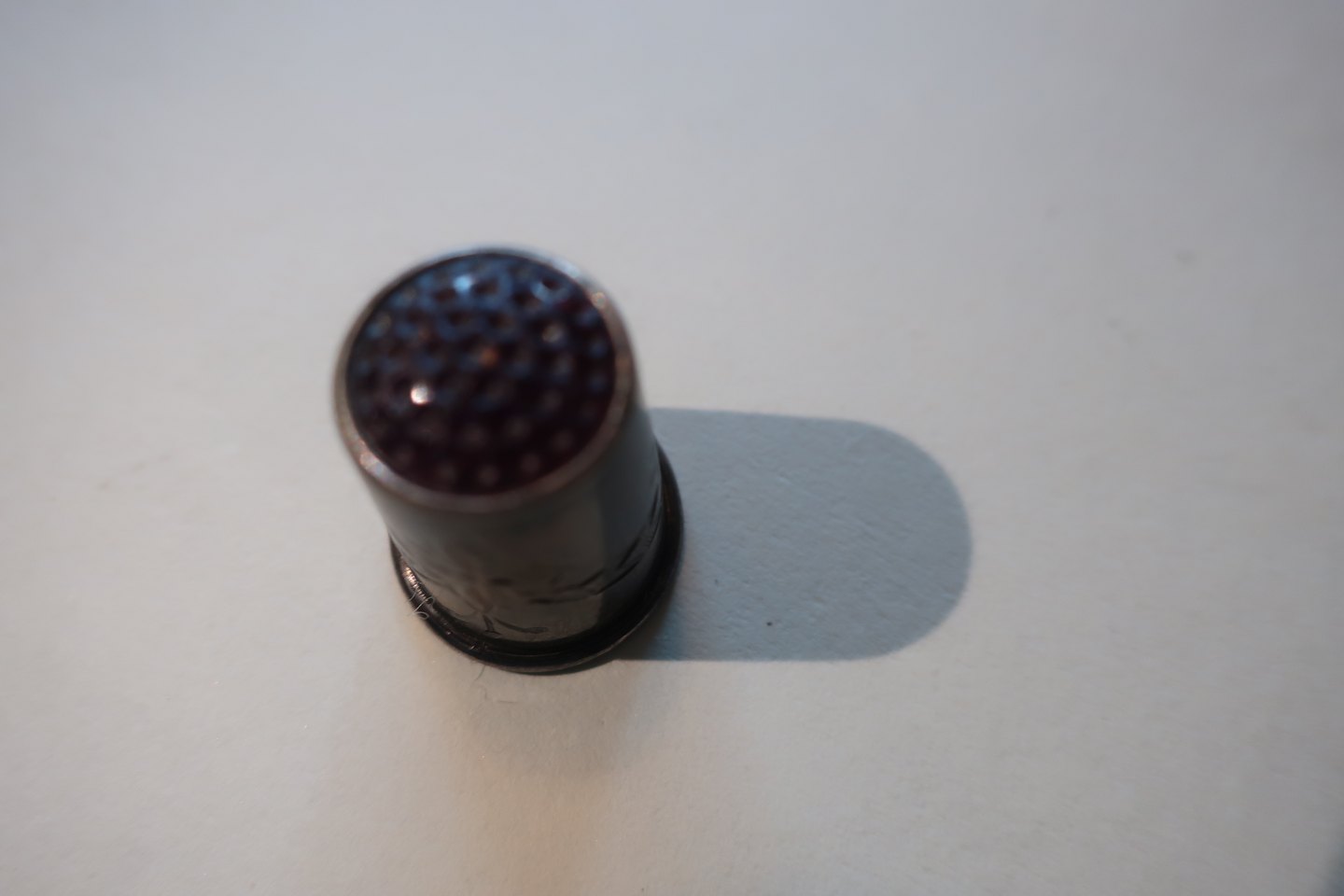 Old thimbles made of silver With a red Fluss With a beautiful decoration in the silver No stamp In a good condition Articleno.: 4-4168