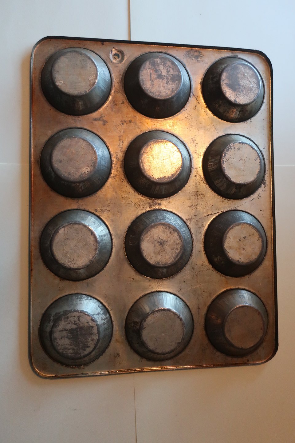 An old baking tin made of metal 12 items on one tin In a good condition Articleno.: 4-910161