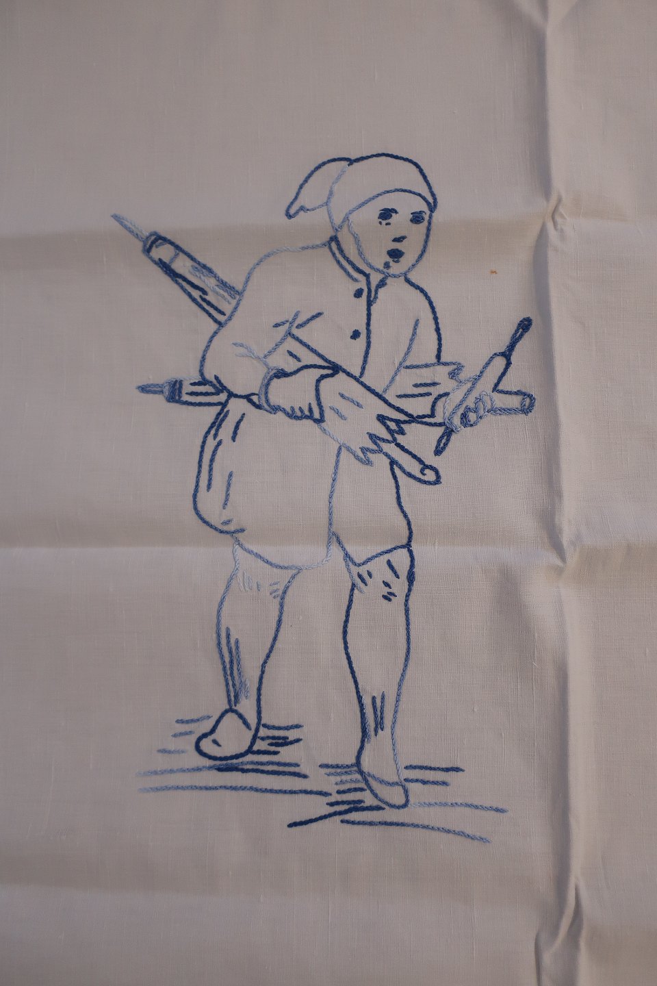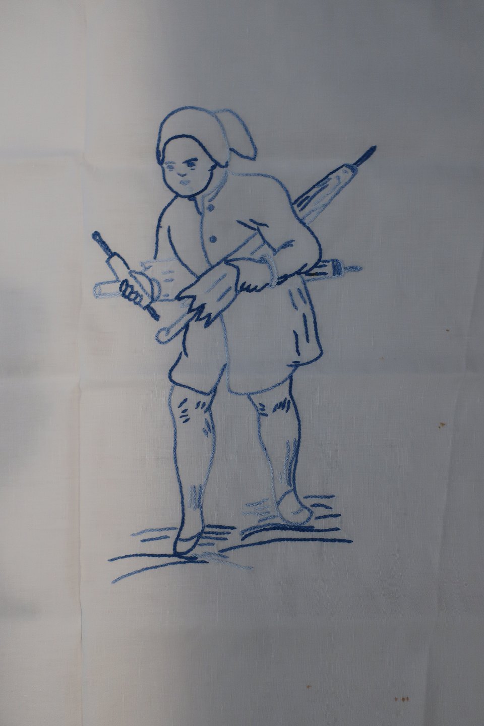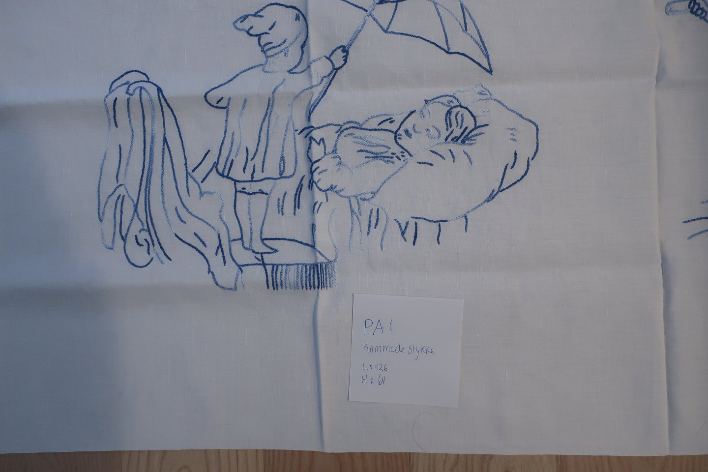 Smukt gammelt broderet stykke med blåt håndbroderi