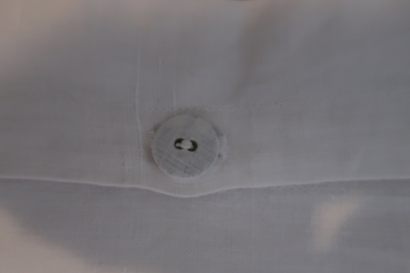 A beautiful old pillow cover with handmade white embroidery and with old white buttons made of fabric