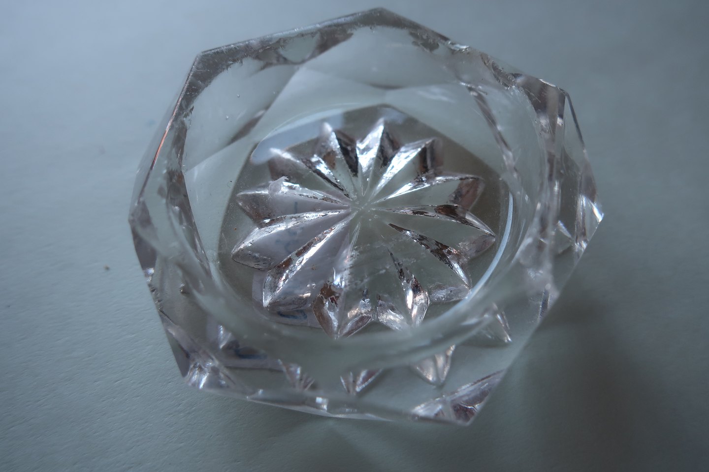 Gammelt saltkar af glas Stjerne i bunden L: ca.