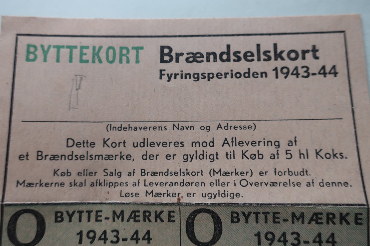 Gamle byttekort / Brændselskort