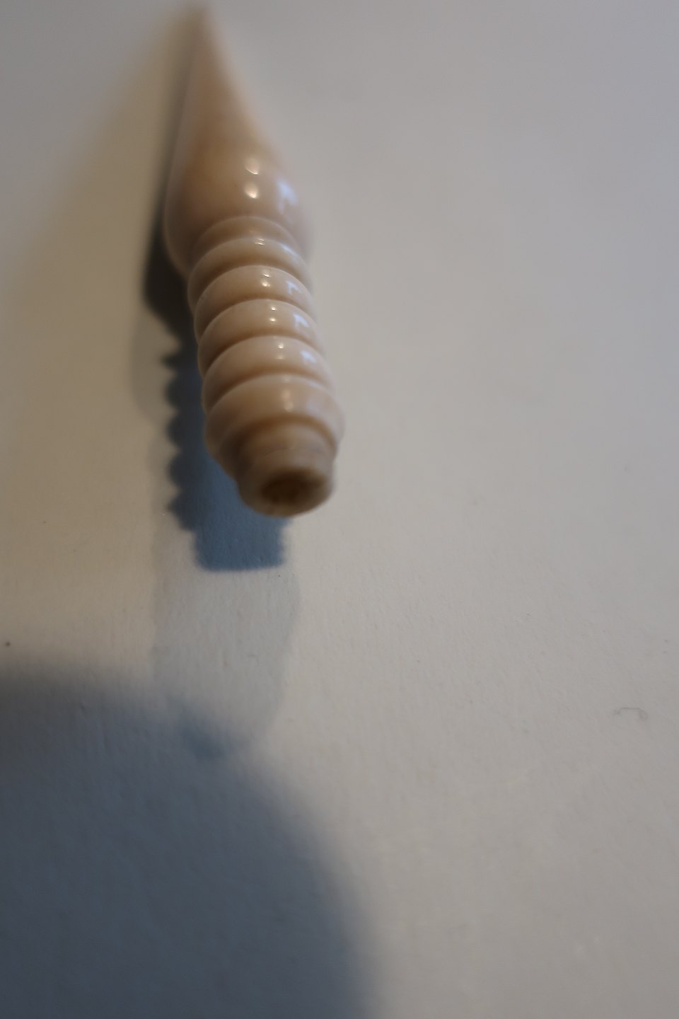 Smuk gammel pren, lavet af ben, bemærk hvor dekorativ denne pren er.