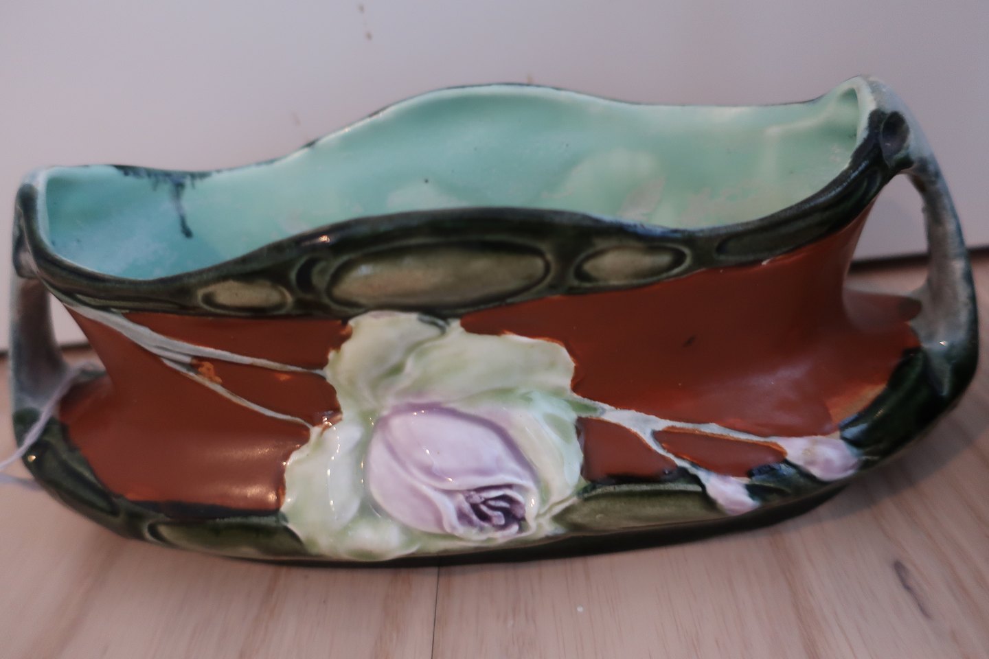 An old and beautiful Maiolica vase + toole for use by making flower decoration