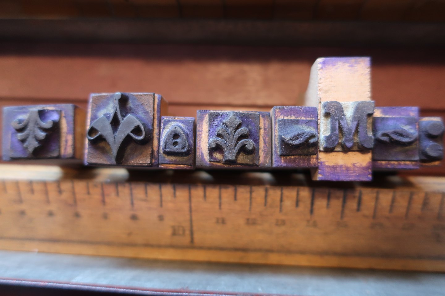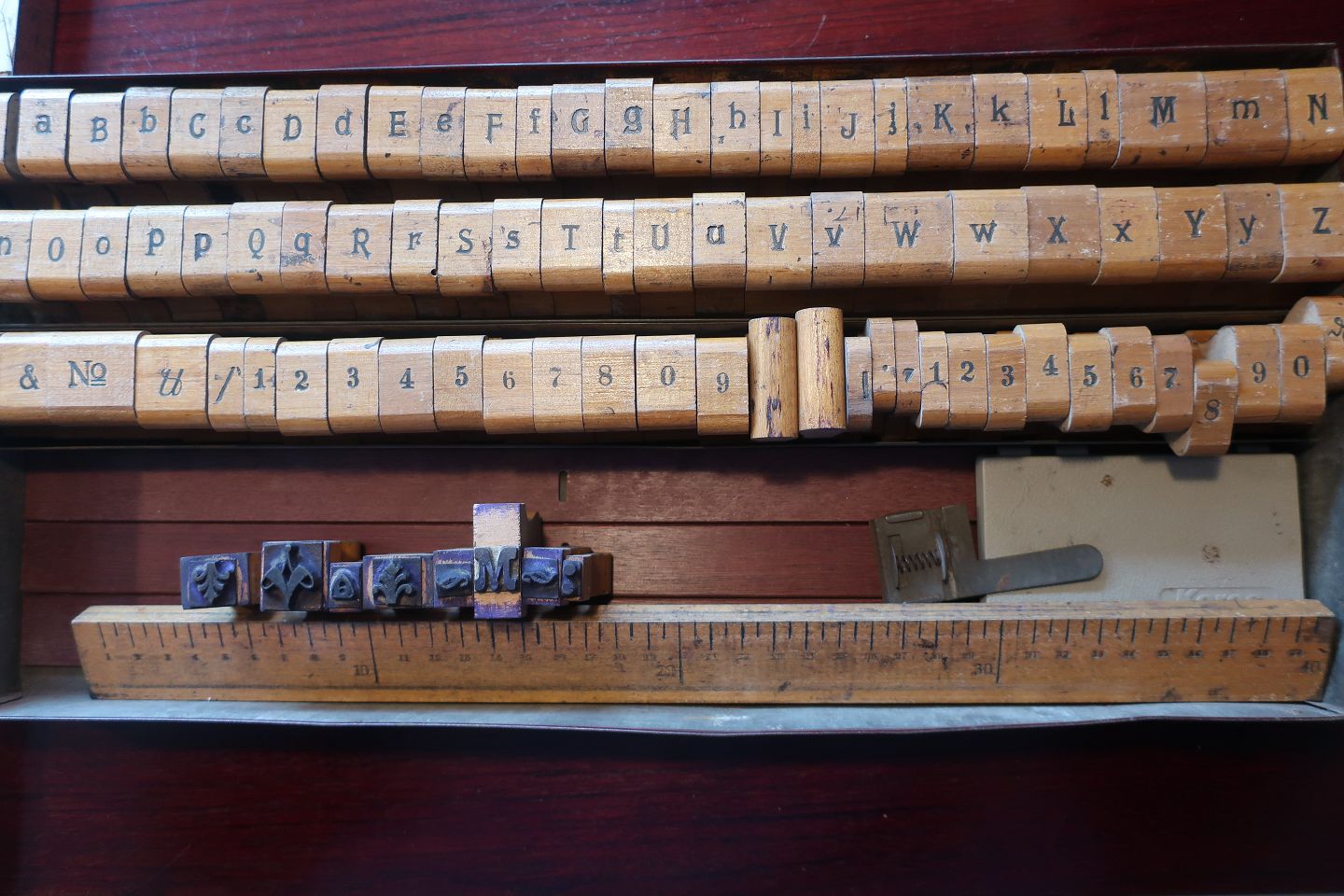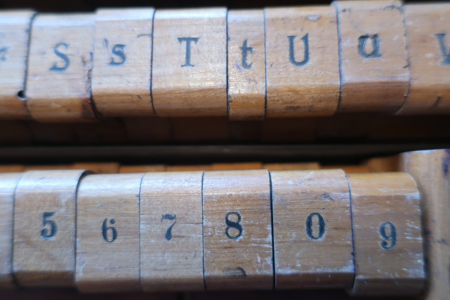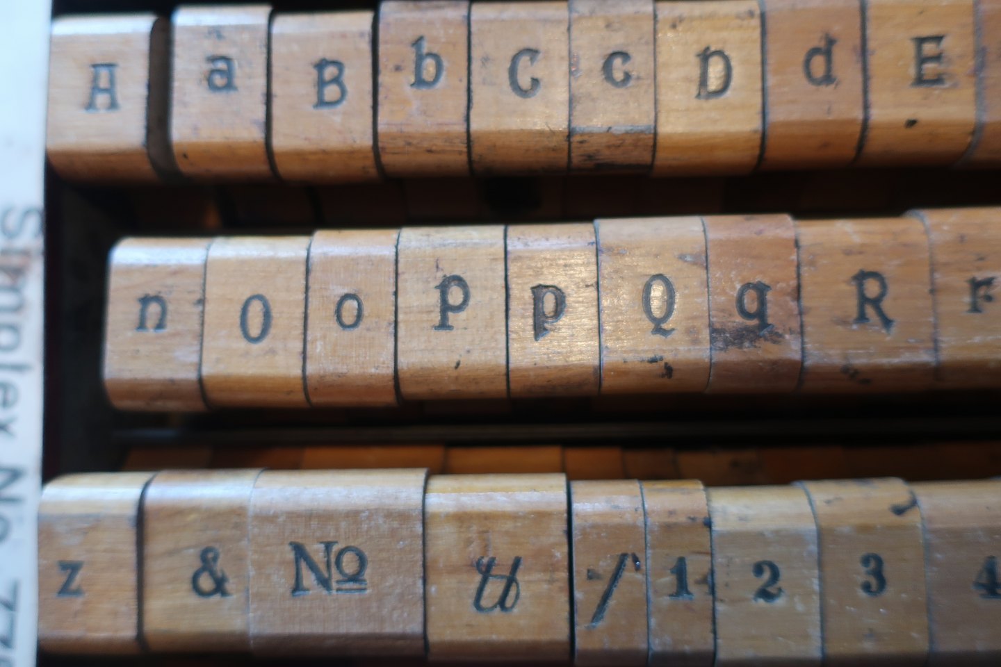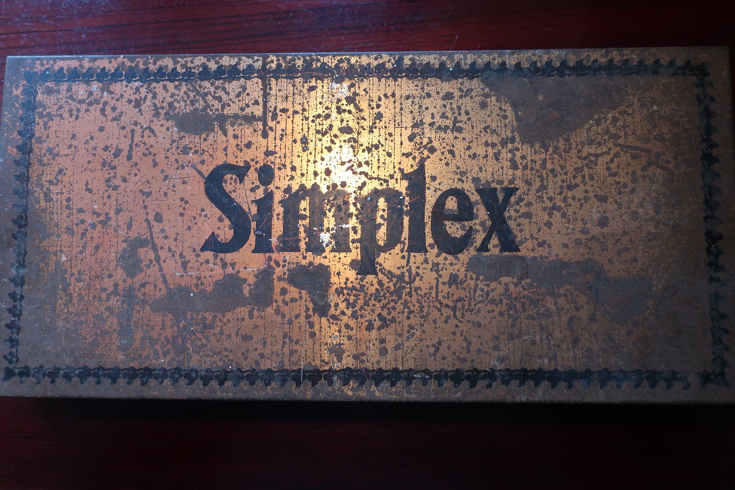Old box from Simplex with letters a.o. made of wood