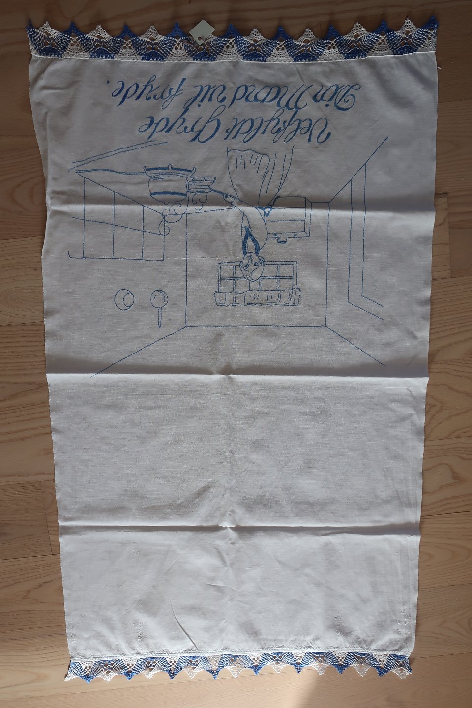 The parade piece was in the good old days used to hang in front of the tea towels so that all things always looked clean and beautiful