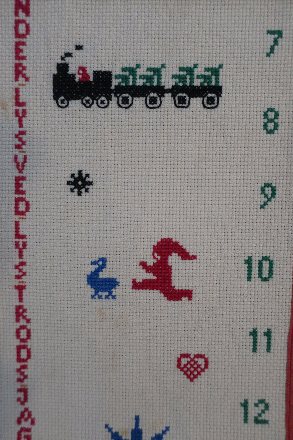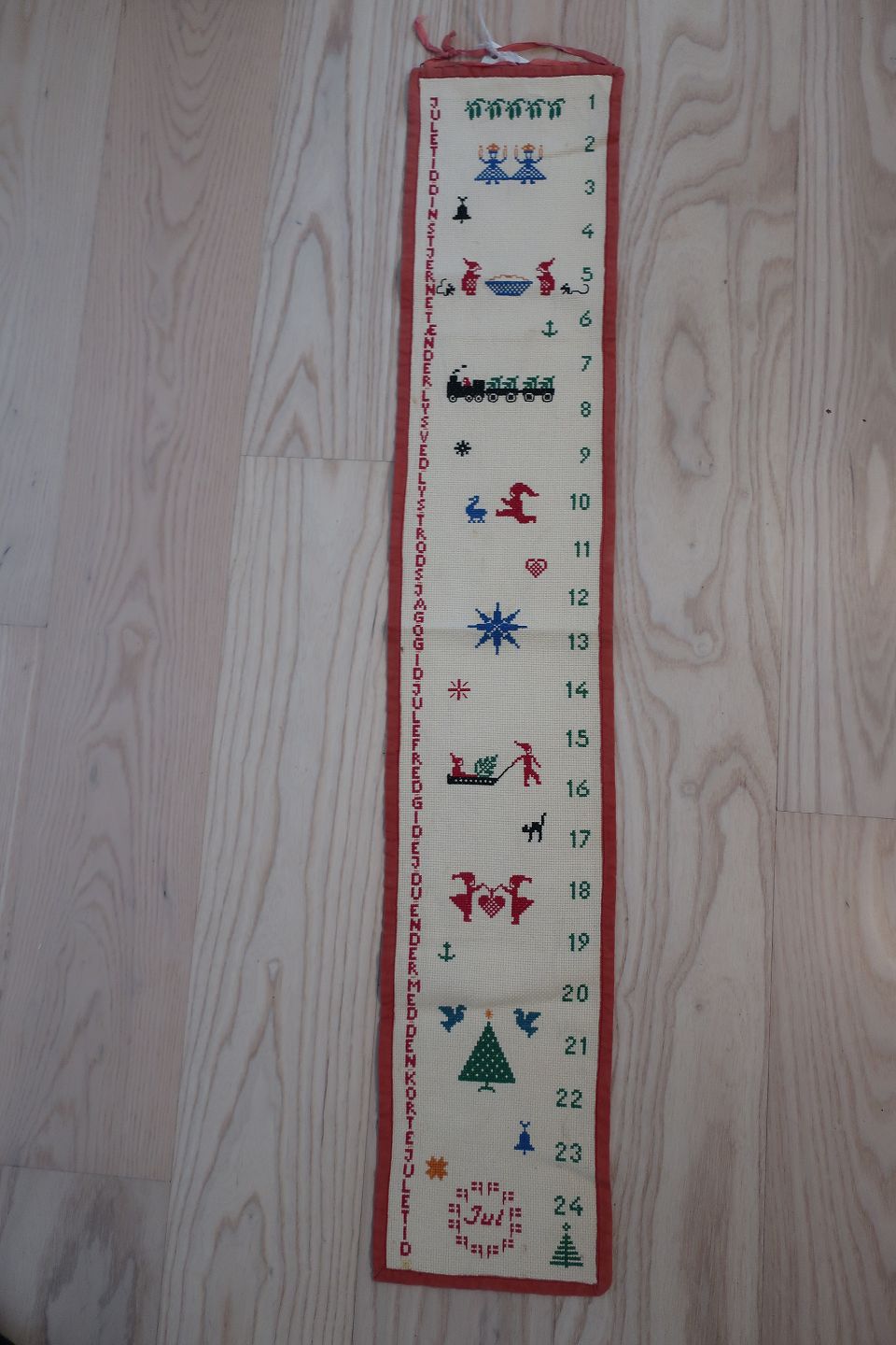 Beautiful. old, christmas calendar to hang up small parcels on, - one for each day in december, with rings to make it easy to hang up the parcels
