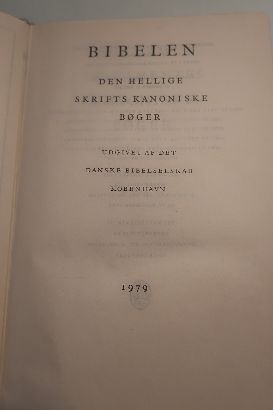 Bibelen Den Hellige Skrifts Kanoniske Bøger Udgivet af Det DAnske bibelselskab 1979 Sideantal 354 Med velbevaret etui i pap Flot stand - Som ny Varenr.: R2HY2