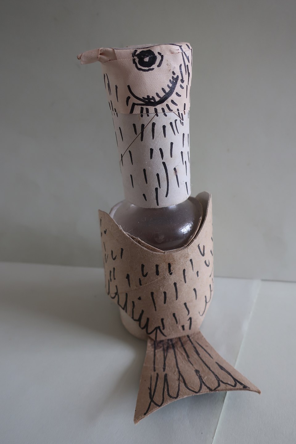 Fugl, håndlavet papmache Til lille snapsflaske "kylling", - flaske medfølger H: 10cm God stand Se også vore andre varer af papmache Varenr.: KHJ02