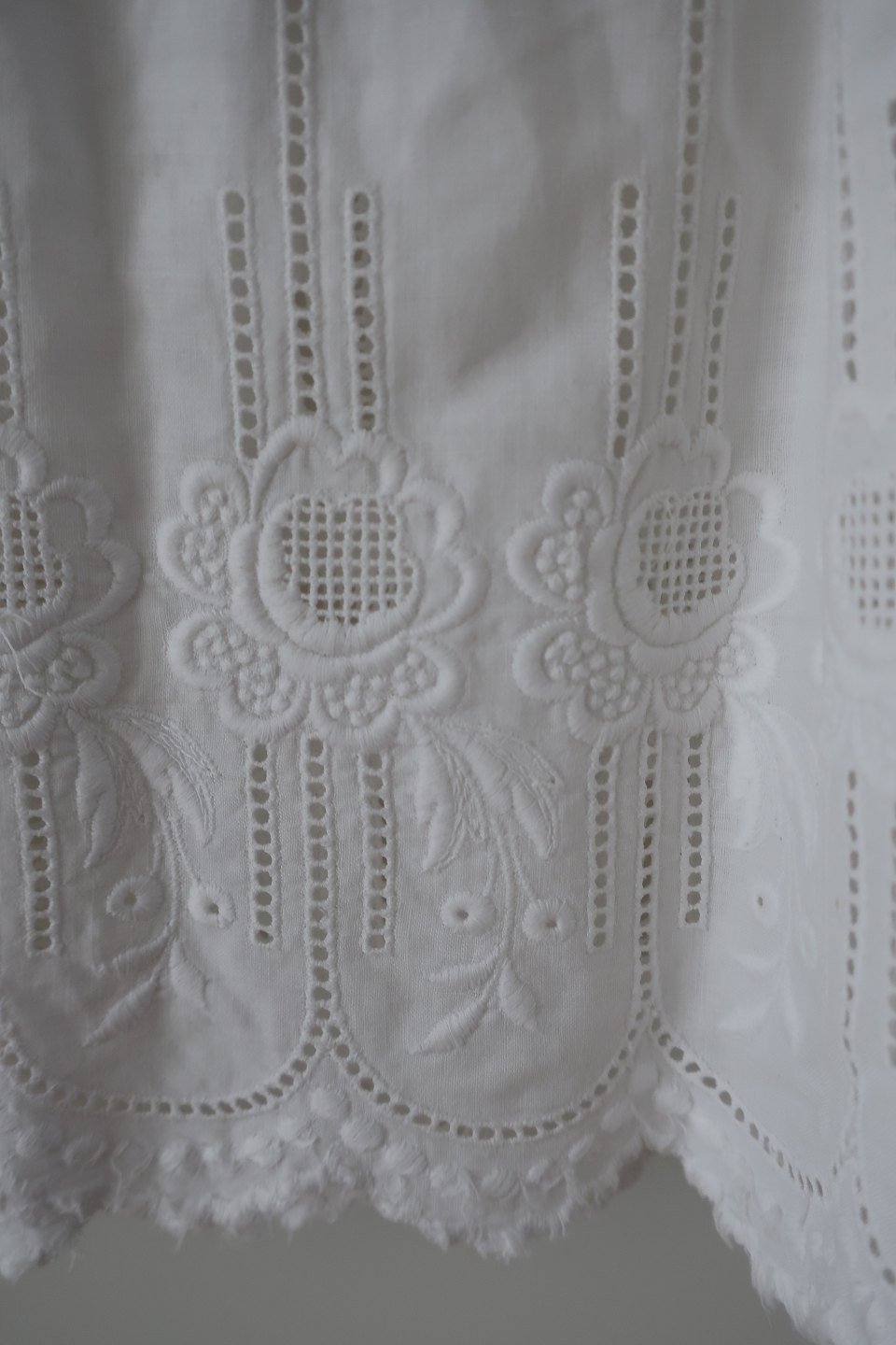 The antique, Danish linen and fustian is our speciality and we always have a large choice of shifts, babydress, tea towels, table clothes, napkin etc.
