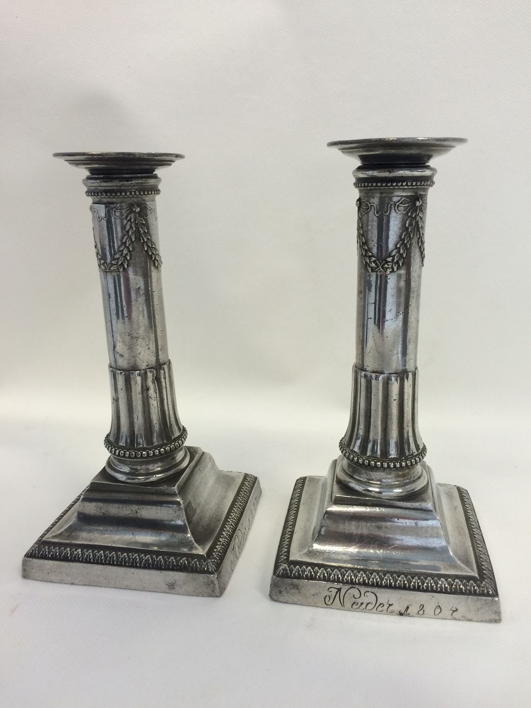 Pair Pewter Candle Sticks