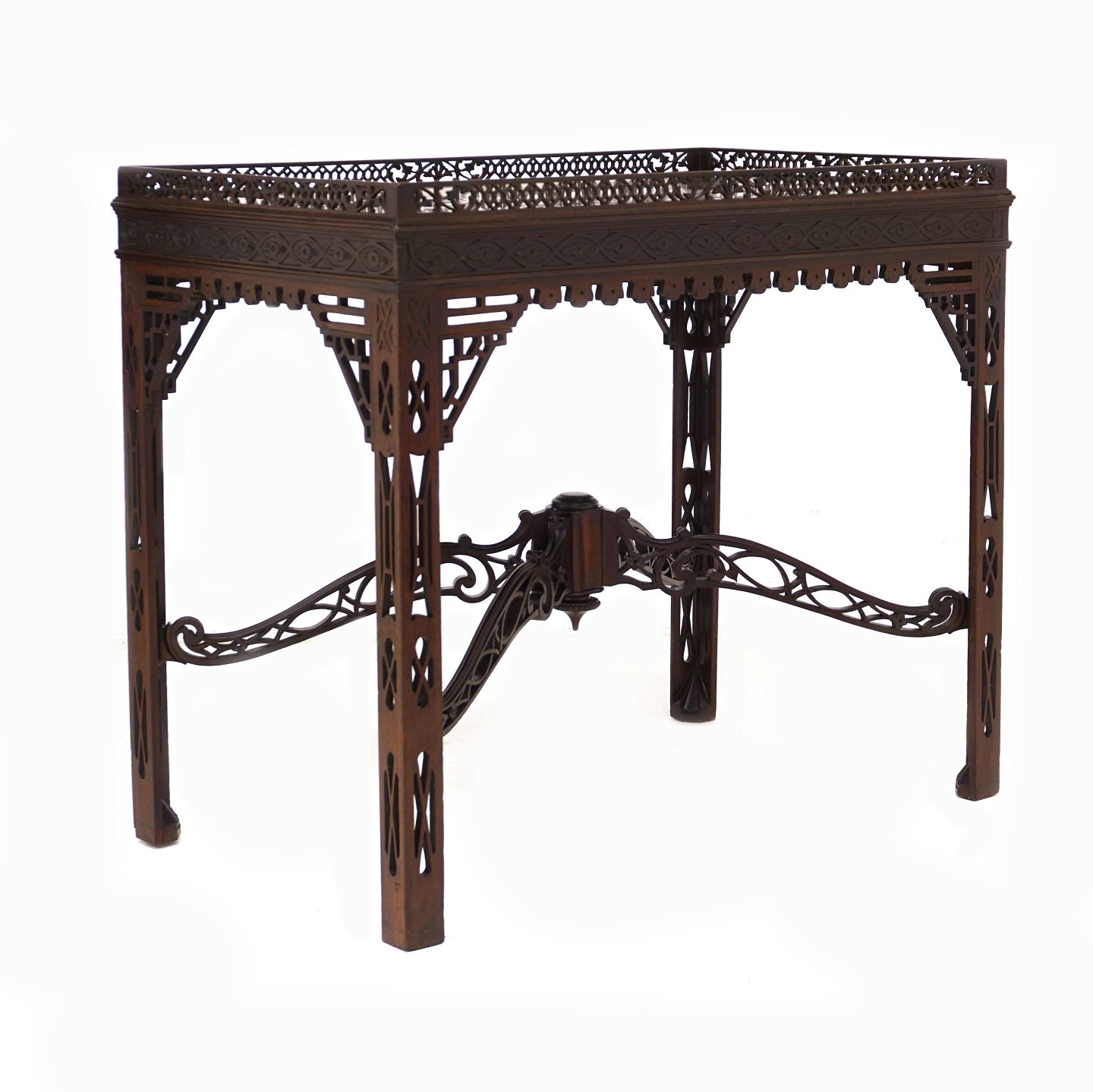 A 19th century Chippendale export tea table Made in China circa 1850 H: 73cm. Plate: 83x52cm Item number: 27908