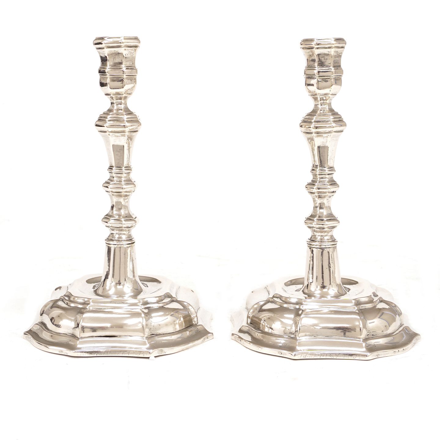 A pair of Danish Baroque silver candlesticks Christen Knudsen, Aalborg, 1746-61 H: 18,1cm. W: 485gr Item number: 34548