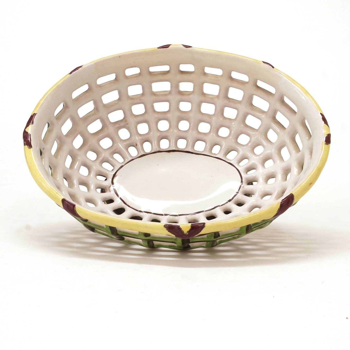 Polychrome faience basket by Marieberg, Sweden, circa 1770 H: 8,5cm. L: 23cm Item number: 34307