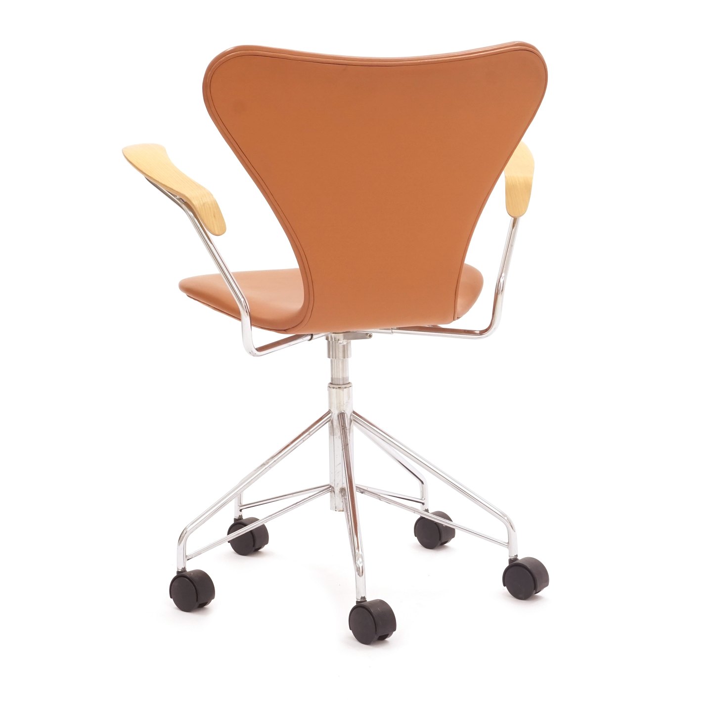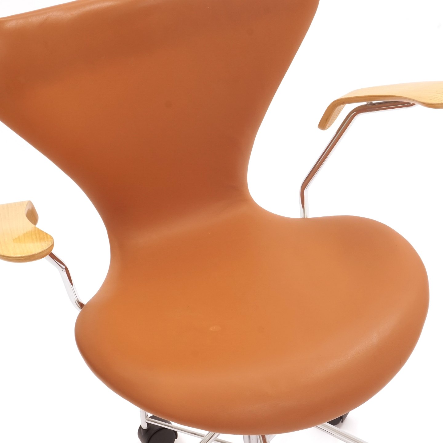 Danish series 7 desk chair in leather by Arne Jacobsen Nice condition. Small signs of use Item number: 35084