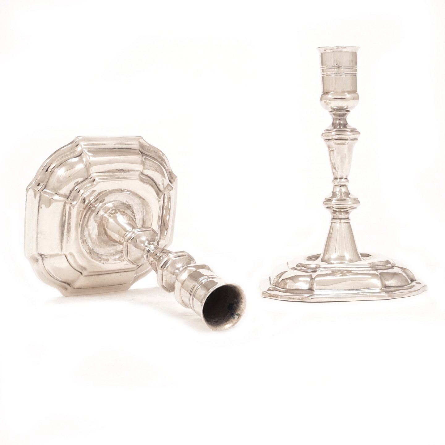 Pair of early Baroque silver candlesticks by Axel J. Krøyer, 1685-1754, Copenhagen dated 1725 H: 13cm. W: 276gr Item number: 35175