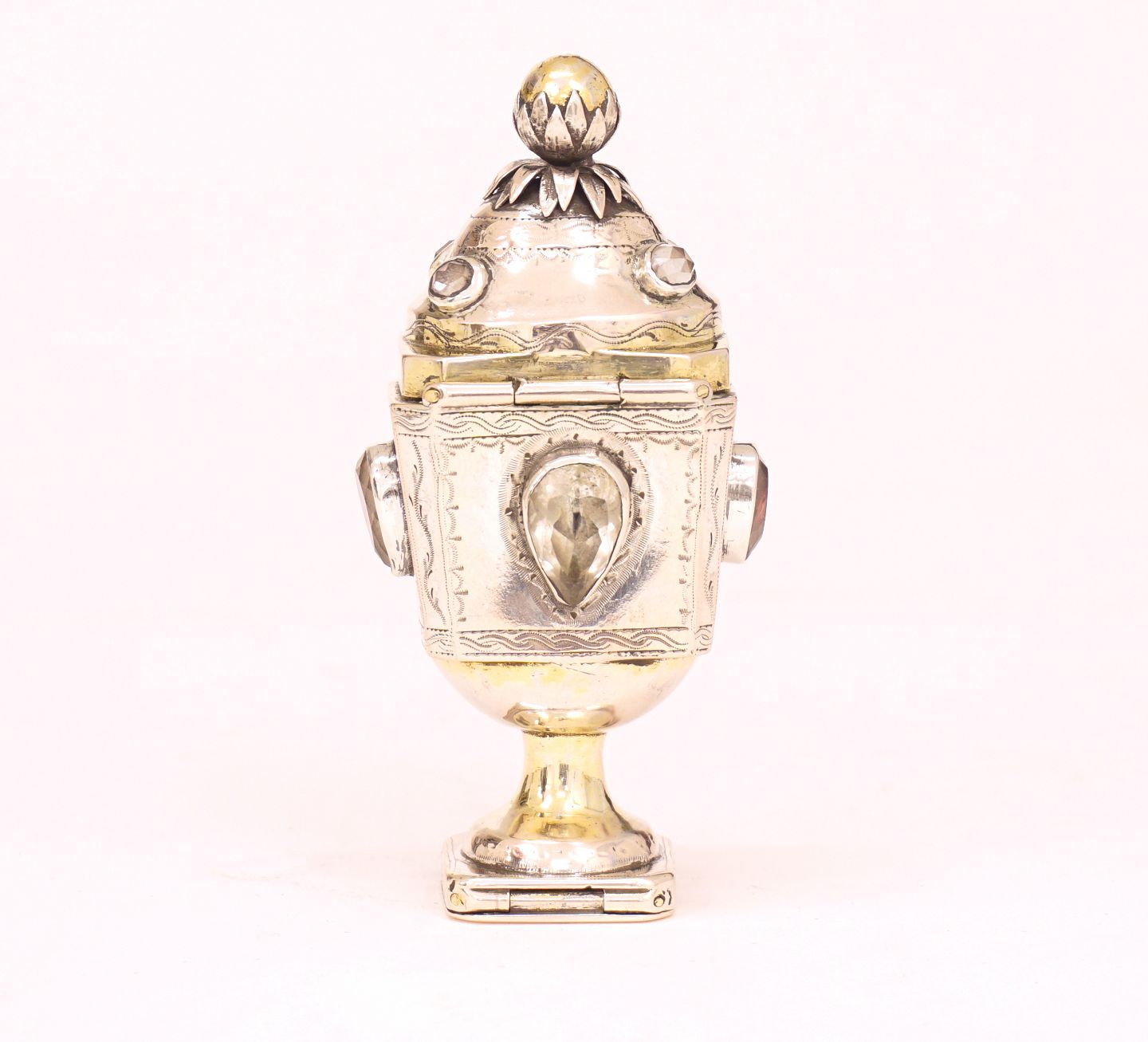 Riechdose. Johan Adolf Müller, Hadersleben, 1789-1850 Innen vergoldet. Datiert 1808 H: 9,0cm. G: 58gr Bestellnummer: 19H