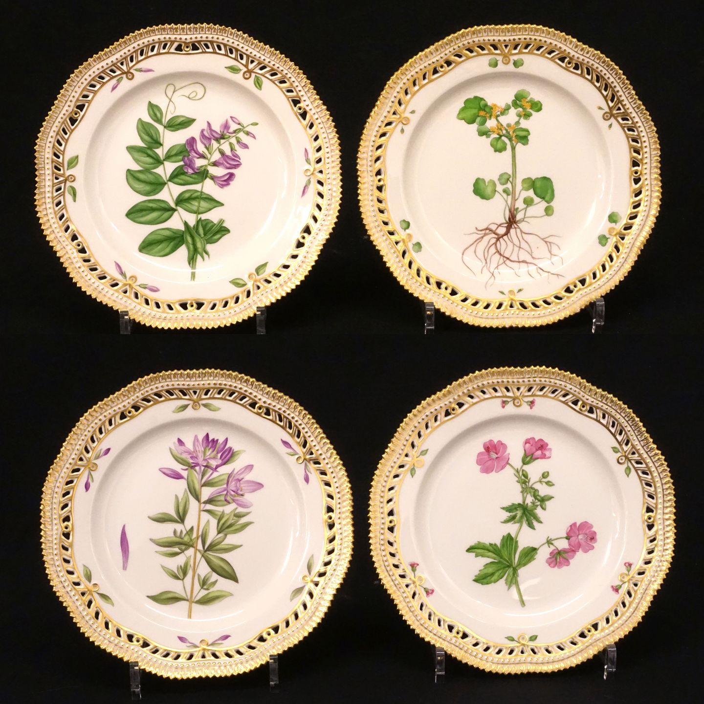 Royal Copenhagen: Satz von vier Desserttellern, Porzellan #3533 D: 23cm Bestellnummer: 28518
