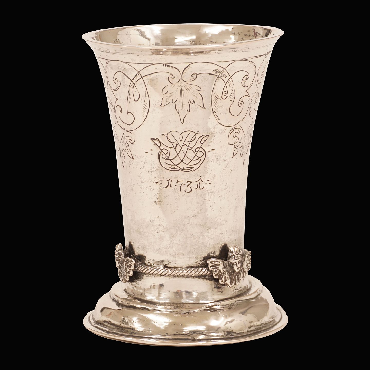 Dänischer Kerubbecher aus Silber. Hergestellt von Joen Joensen, Næstved, 1700-56