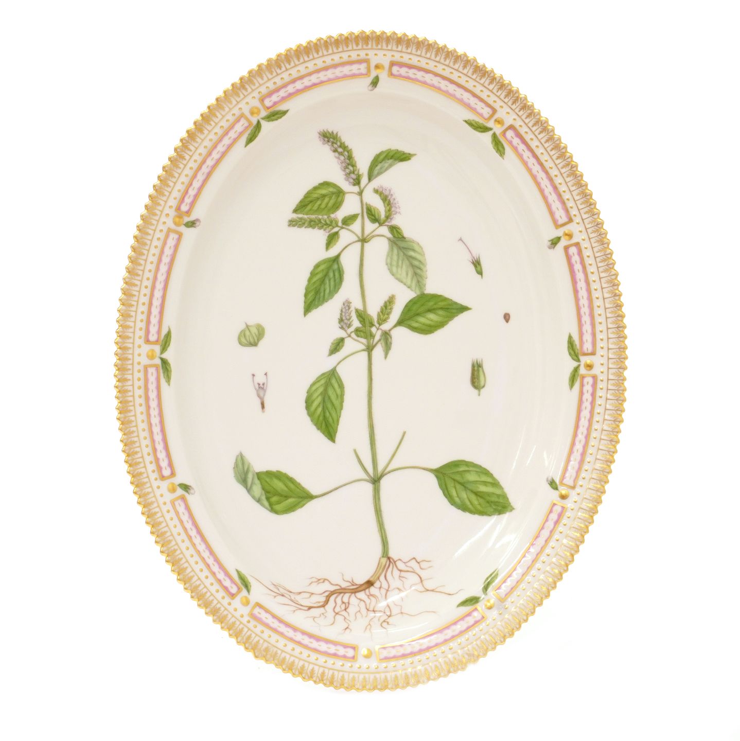 Royal Copenhagen Flora Danica grosse Platte 3517. L: 36cm. "Elsholtzia ceistata Willd."